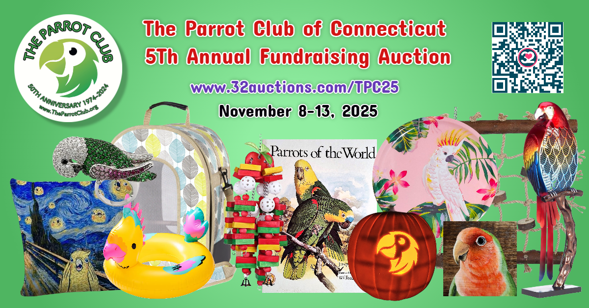 The Parrot Club is a non-profit organization founded in 1974 by a group of people interested in spreading the fun and enjoyment of exotic birds. The Parrot Club meets mostly online over Zoom, so we welcome people from around the world to join us! We do have occasional social events in person. Most meetings are recorded and posted to our YouTube channel, though some are available to members only. Check out our